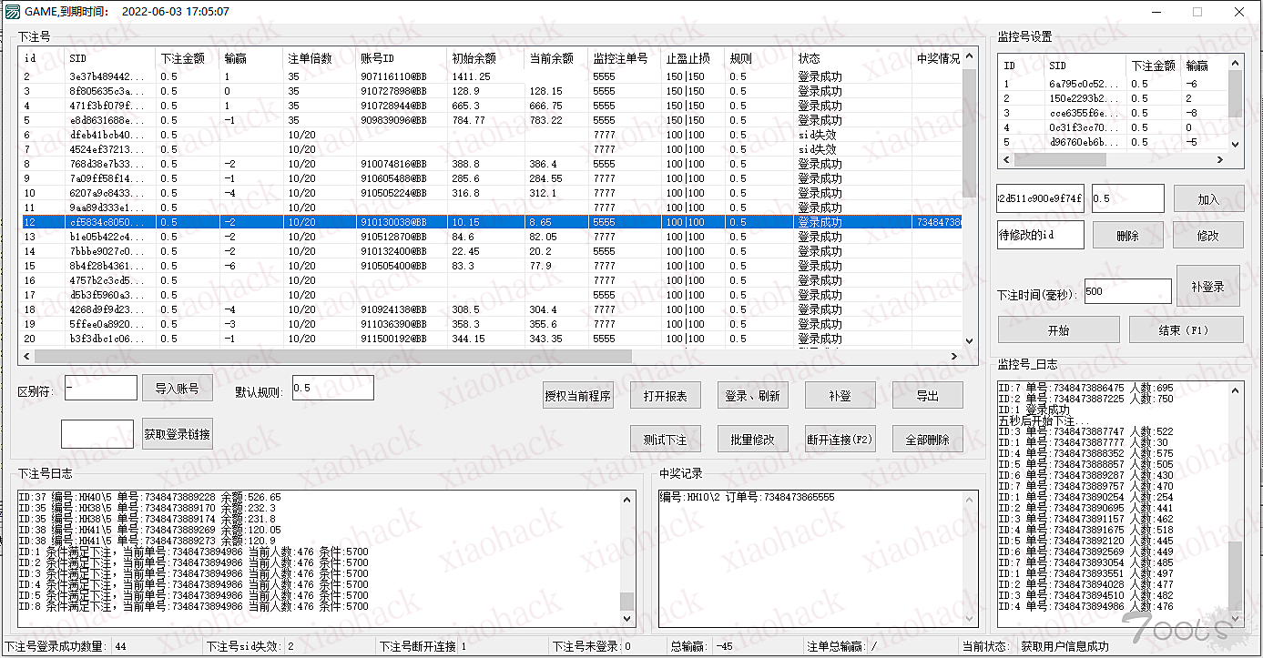wss下注游戏辅助 作者 纯情 发布于 2022-08-02 分类 网络 热度 °C 选项 默认字体 ✓ 思源宋体 ✓ 霞鹜文楷体 ✓ 小 ✓ 中 ✓ 大 ✓ 阅读模式 生成海报 编辑 程序的页面,是关于什么什么飞鸟的下注游戏辅助,通过大量的号去跑后缀注单奖wss协议参数解密跟js参数解密协议核心代码 最后的运行效果截图 对wss协议感兴趣的朋友可以看一下