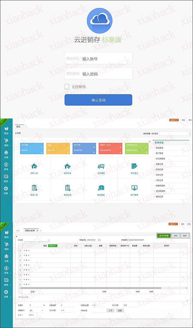 简单方便。 功能强大,系统采用php+MYSQL开发,B/S架构,方便随地使用,含购货,销货,仓库管理,商品管理,供应商管理,职员管理等非常多的功能。