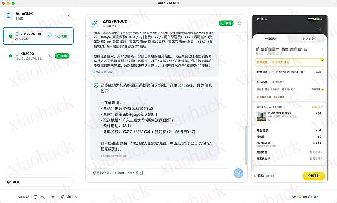 从理解自然语言 → 打开 App → 点击 → 输入 → 确认,全程由 AI 自动完成。