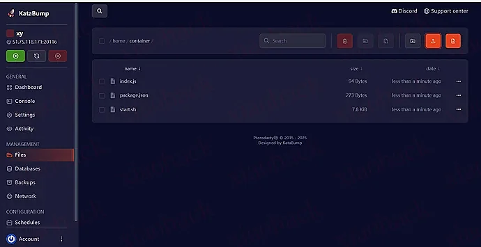 部署在 KataBump 免费法国节点上的 Node.js 服务,当前运行正常、资源占用极低,非常健康