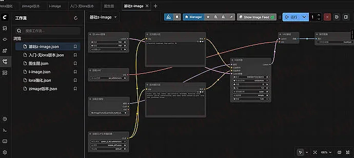 { "2": { "inputs": { "text": "a beautiful landscape, high quality, 8k", "clip": ["16", 0] }, "class_type": "CLIPTextEncode", "_meta": { "title": "正向提示词" } }, "4": { "inputs": { "seed": , "steps": 8, "cfg": 1, "sampler_name": "euler", "scheduler": "simple", "denoise": 1, "model": ["15", 0], "positive": ["2", 0], "negative": ["9", 0], "latent_image": ["5", 0] }, "class_type": "KSampler", "_meta": { "title": "K采样器" } }, "5": { "inputs": { "width": 768, "height": 768, "batch_size": 1 }, "class_type": "EmptyLatentImage", "_meta": { "title": "空Latent图像" } }, "6": { "inputs": { "vae_name": "ae.safetensors" }, "class_type": "VAELoader", "_meta": { "title": "加载VAE" } }, "7": { "inputs": { "samples": ["4", 0], "vae": ["6", 0] }, "class_type": "VAEDecode", "_meta": { "title": "VAE解码" } }, "8": { "inputs": { "filename_prefix": "ComfyUI", "images": ["7", 0] }, "class_type": "SaveImage", "_meta": { "title": "保存图像" } }, "9": { "inputs": { "text": "blurry, ugly, bad, lowres, jpeg artifacts, watermark, distorted, noisy, artifact, glitch, oversaturation, neon tones, harsh contrast or glow, color cast, pixelated, blocky", "clip": ["16", 0] }, "class_type": "CLIPTextEncode", "_meta": { "title": "反向提示词" } }, "15": { "inputs": { "ckpt_name": "zImageTurboQuantized_fp8ScaledE4m3fnKJ.safetensors" }, "class_type": "CheckpointLoaderSimple", "_meta": { "title": "加载主模型" } }, "16": { "inputs": { "clip_name": "qwen_3_4b.safetensors", "type": "stable_diffusion" }, "class_type": "CLIPLoader", "_meta": { "title": "加载CLIP文本编码器" } } } 在工作流界面,按住 Ctrl+O,选择刚才的 json,导入后会形成如下工作流,点击运行即可。