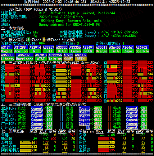 Taphip,主营产品多样,有 CNIX/IEPL/ 三网优化 / BGP 落地等多种产品,产品以价格实惠为主要特点,国内特殊产品 (IX/IEPL) 稳定性一般,经常爆炸,其他产品稳定性还不错。老板夜猫子,半夜才处理工单,商家整体而言就是价格实惠的 OneMan 小灵车,想省钱能接受小问题就买,追求稳定请绕道。