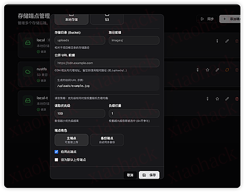 - 支持 s3 兼容端点存储,并支持设置备份端点自动同步备份,对存储端点进行负载均衡。