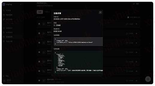 对于批量、耗时的异步操作,比如图片分析、批量删除、同步、批量分析等可以看到在任务队列看到相关参数和操作对象及结果