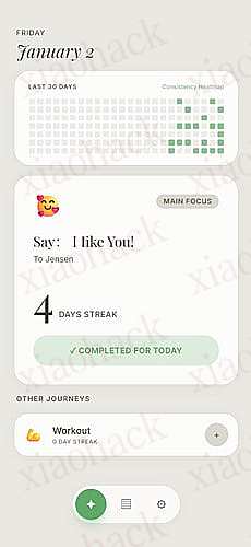 - 热力图(可选),查看到目前为止的数天内打卡频率
