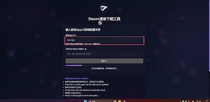 7. 将游戏 id 粘贴进来,并点击下载清单文件