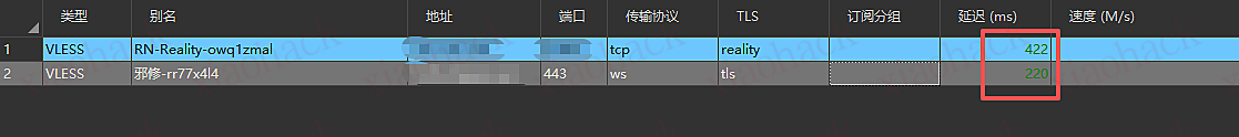此时回到 v2rayN 对刚刚修改后的节点测速,应该是有延迟的